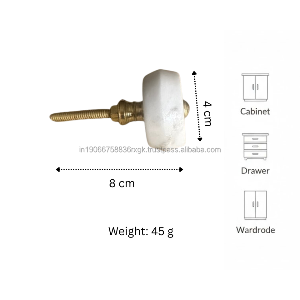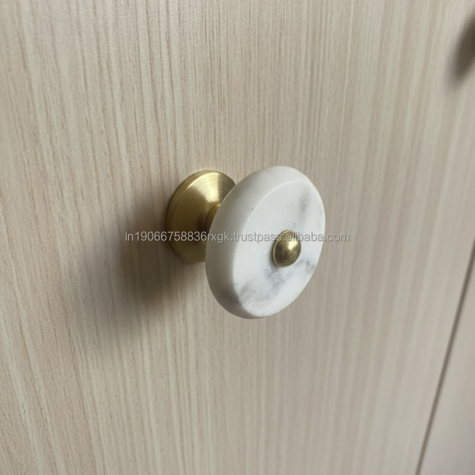 AG Elements Bouton de tiroir de cuisine en marbre blanc, finition brillante, design minimaliste, durable, antirouille, pour meubles de cuisine