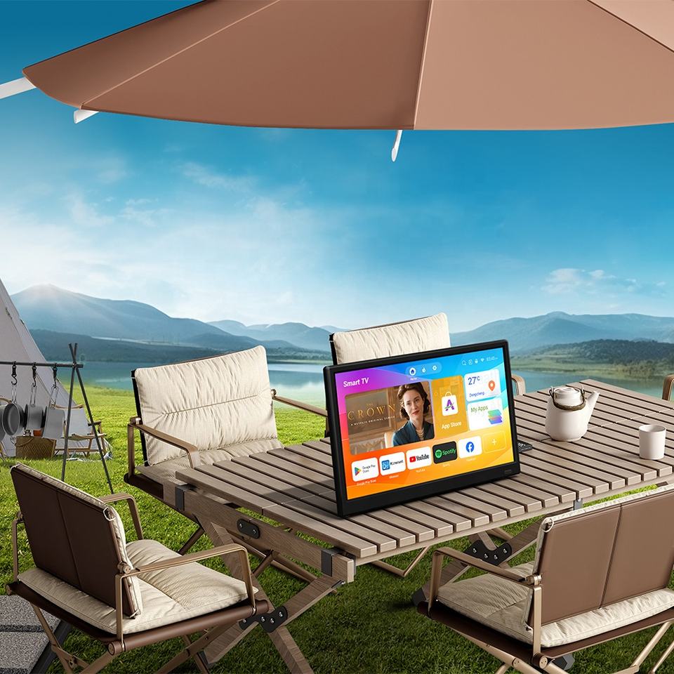 Téléviseur intelligent portable alimenté par énergie solaire AG, Android HD FHD, écran de 14, 15,6, 17,3, 20 pouces pour la maison, la voiture, le camping, le magasin, télévision LED d'extérieur