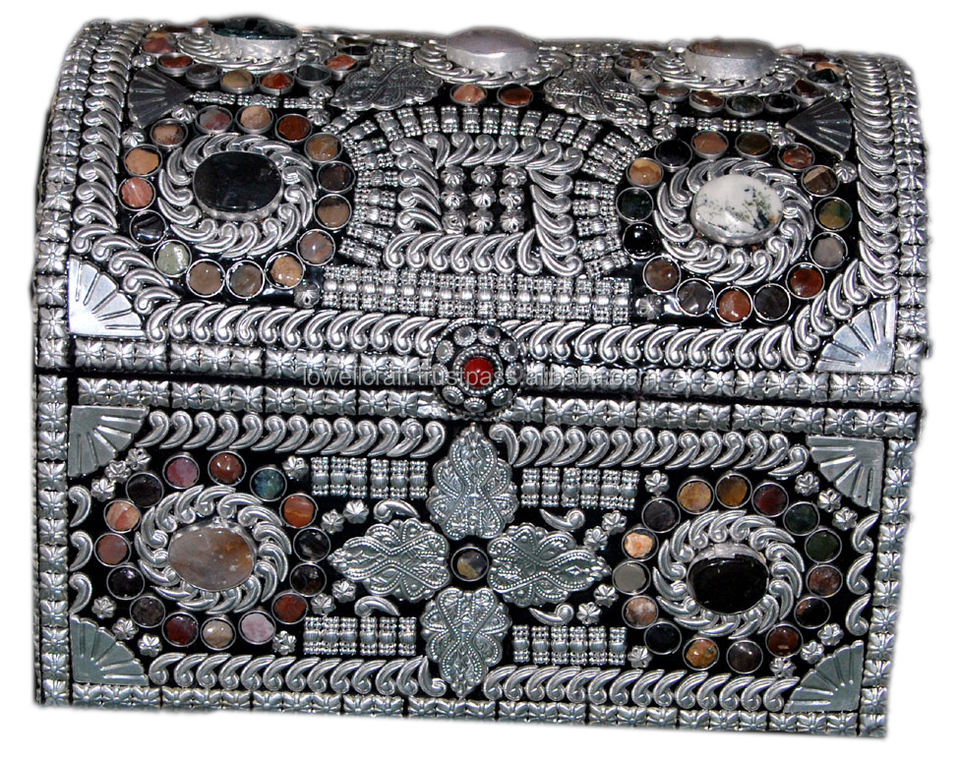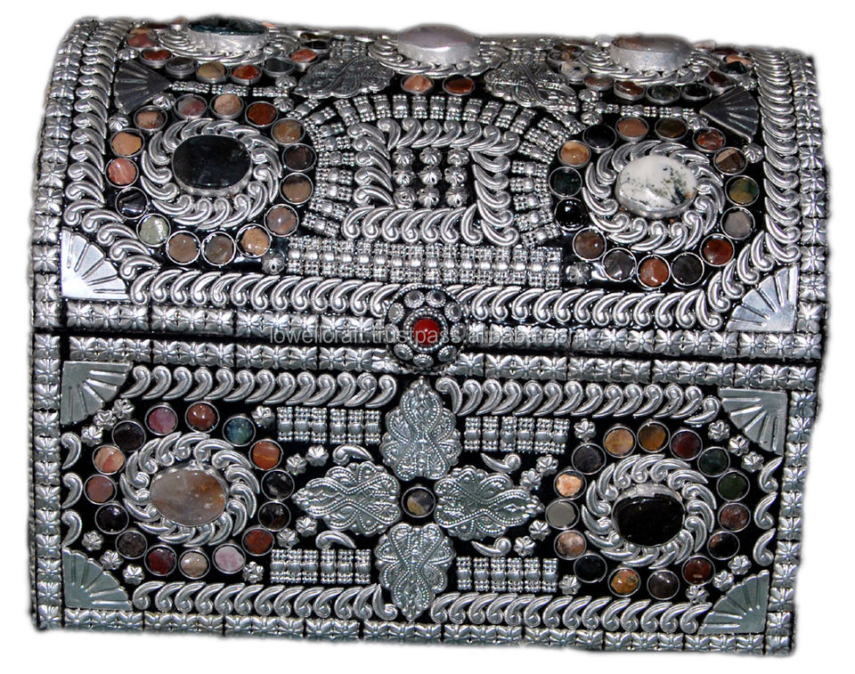 Boîte en bois naturel, pierre d'agate indienne, ac MDF