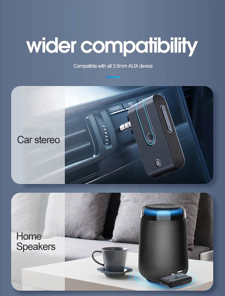 Récepteur Bluetooth AGETUNR J27 V5.3 AUX Adaptateur musical 3,5 mm Double liaison Appel mains libres Connexion automatique pour voiture/haut-parleur/bateau/casque