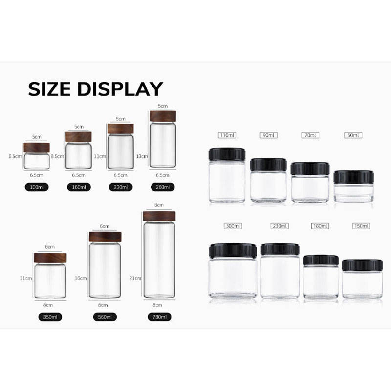 Pot en verre AGG personnalisé pour fleurs séchées, bouteille en verre à parois droites de 3,5 g 4 oz à large ouverture et résistante aux enfants