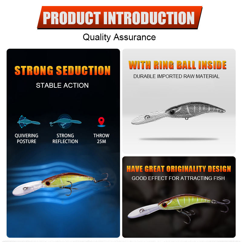 AGITEK Leurre de pêche en plastique rigide pour eaux profondes, type Big Bib, en ABS, avec hameçons triples robustes