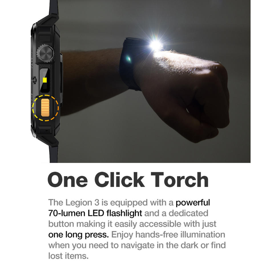 Montre AGM W3 avec lampe de poche, écran OLED, étanche 5ATM, 100 modes sportifs, appels BT, Relojes, montre intelligente robuste, montre intelligente 2025 pour hommes