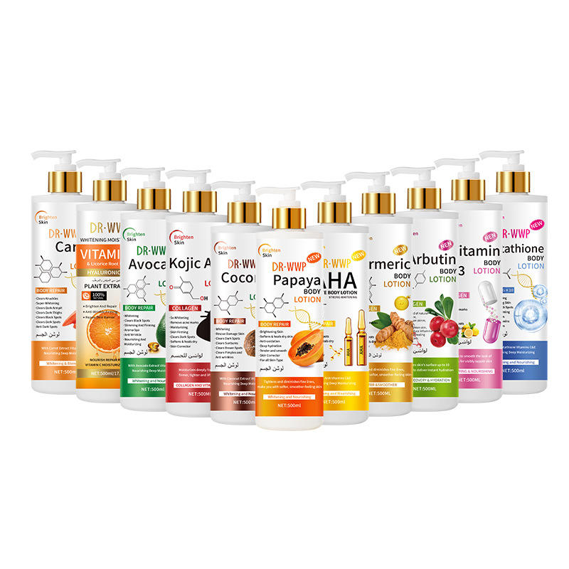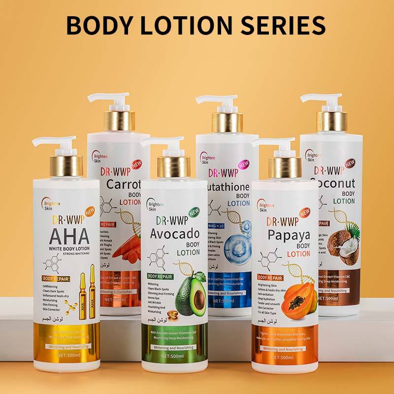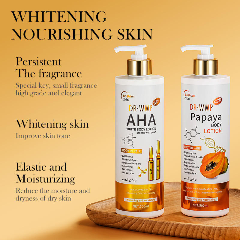 Lotion Corporelle Hydratante AHA aux Acides de Fruits 500ml avec Niacinamide, Vitamine B3, Vitamine E et Vitamine C pour Peaux Sèches et Éclaircissement
