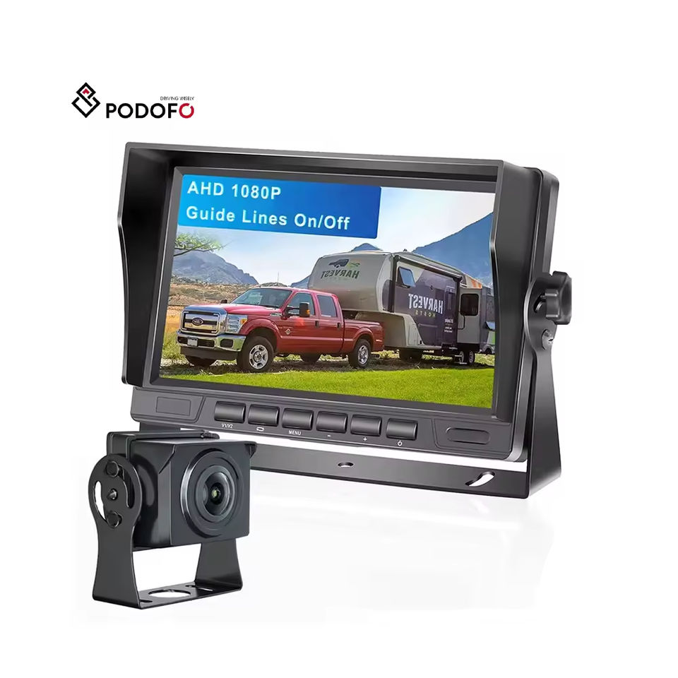 Kit Moniteur Voiture Podofo 7'' AHD 1080P avec Caméra de Recul et Kit d'Aide au Stationnement, Câble d'Extension 15M pour Bus, Fourgonnette, Camping-car, Camion
