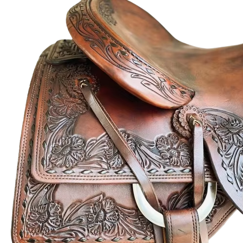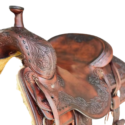 AHRAN Industries Selle d'équitation tout usage Rembourrage respirant Ajustement sécurisé Design occidental élégant Arbre en bois en cuir véritable