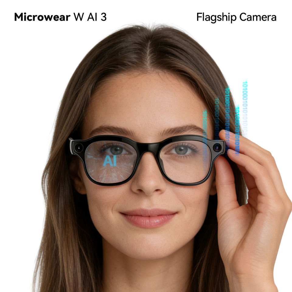 Lunettes intelligentes connectées AI 3 BT WiFi avec caméra, prise de photos, enregistrement vidéo et audio, traducteur IA, reconnaissance d'images