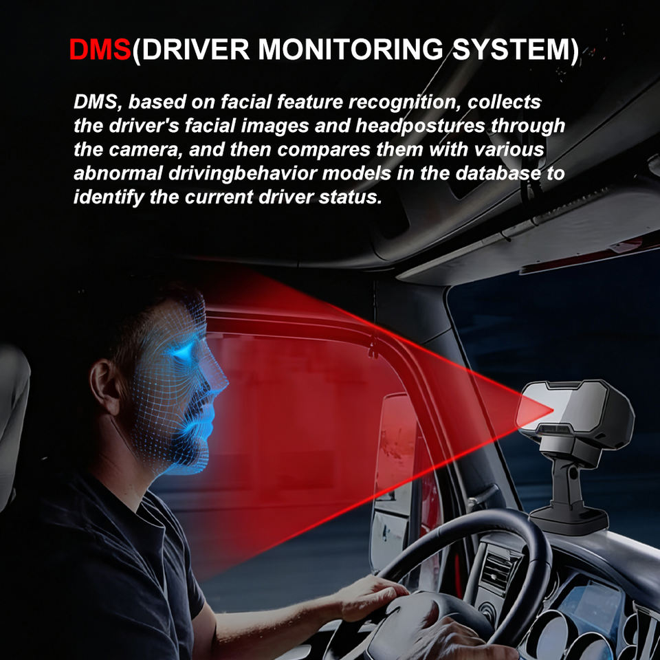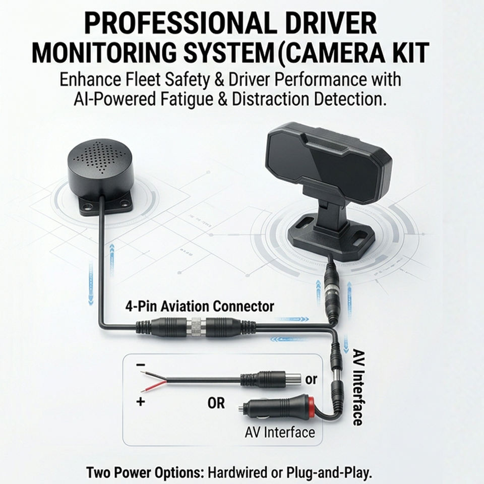 Système de surveillance du conducteur (DMS) par IA avec détection de fatigue infrarouge en temps réel, alerte anti-distraction et alarme anti-somnolence pour camions 12-24V