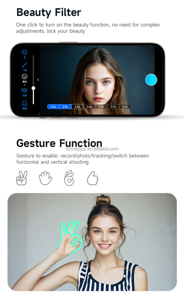 Bâton intégré de Selfie, Axe de rouleau de 360 degrés, 1 AxeCaractéristiques
