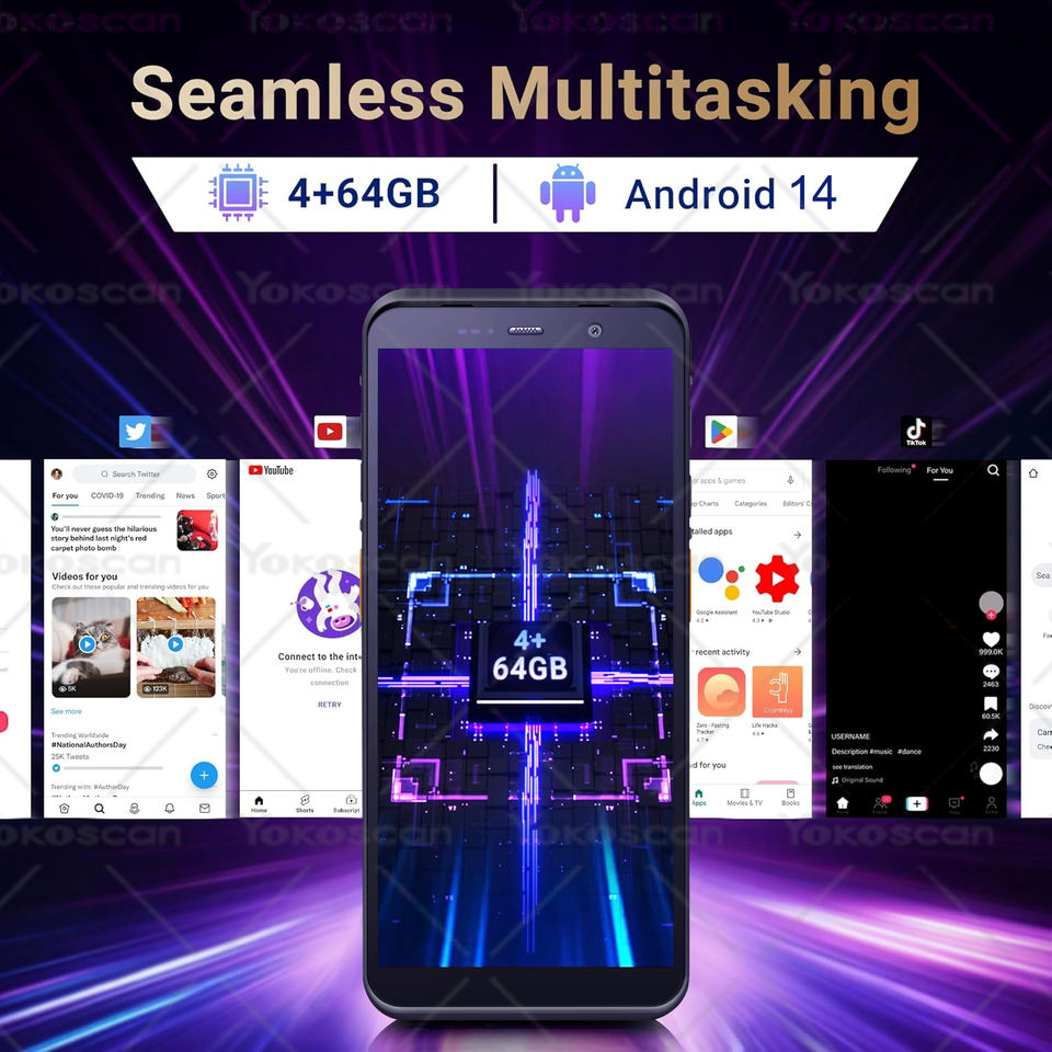 Terminal portable intelligent IA Google Play PDA 8 cœurs 6,0 pouces Android 14, appareil 2D/QR mégapixels, 4G NFC pour magasin
