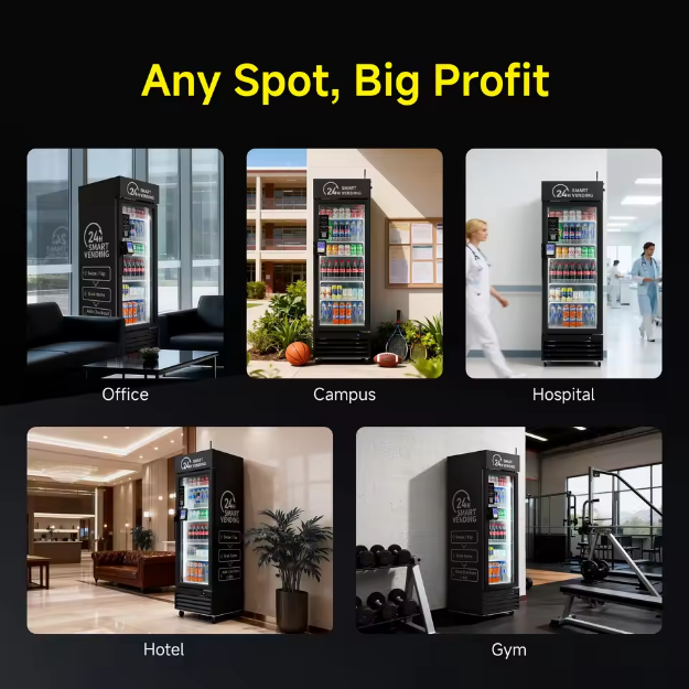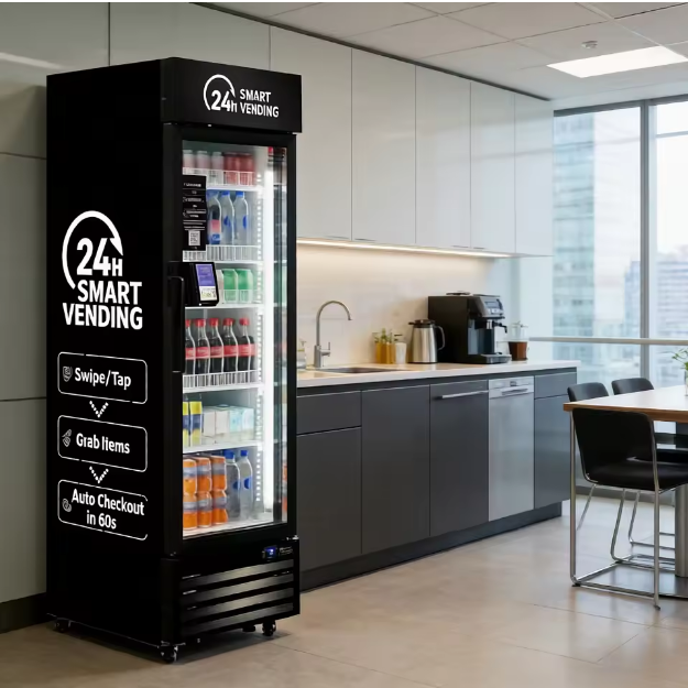 Distributeur automatique intelligent à reconnaissance visuelle AI pour boissons froides et snacks – Armoire de libre-service