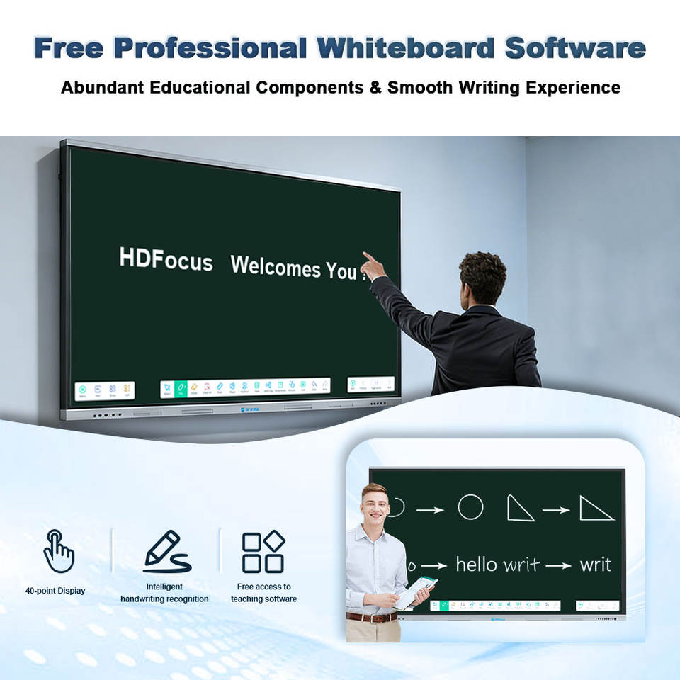 Tableau interactif intelligent de 85 pouces alimenté par l'IA pour l'enseignement scolaire avec écran tactile, tableau blanc interactif et écran plat