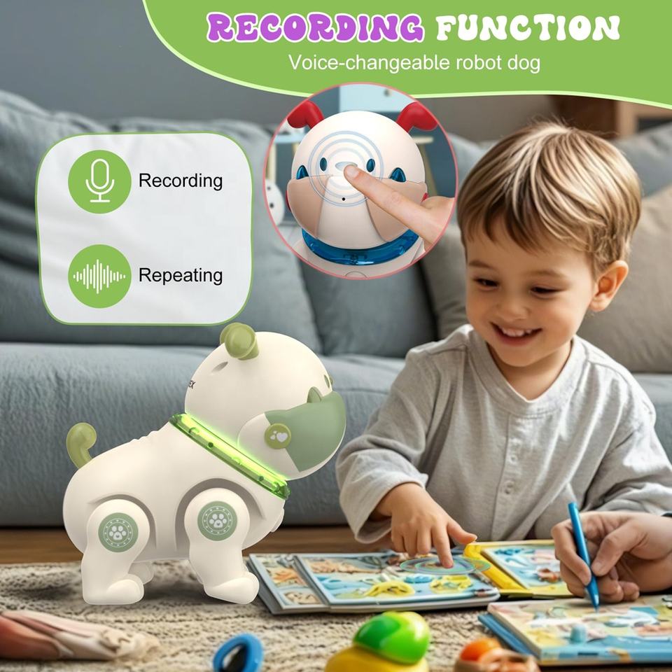 Selling point: AI smart RC robot dog:After recording, you can switch 4 tones and play the recording