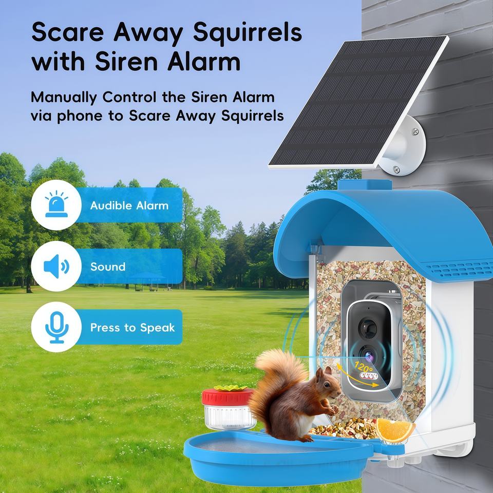 Mangeoire à oiseaux intelligente à visionnement visuel par IA, alimentation solaire, conception étanche, capable d'identifier plus de 10 000 espèces d'oiseaux, alarme audio bidirectionnelle, distributeur de nourriture pour animaux de compagnie