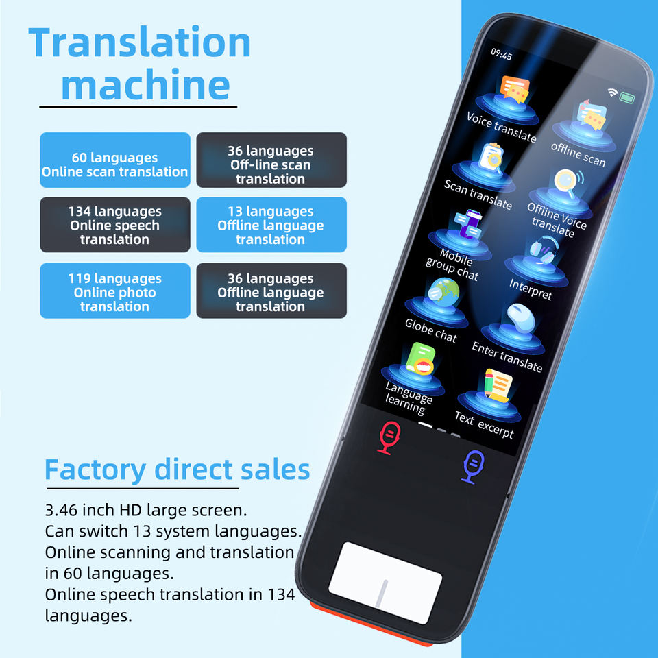 Stylo de traduction vocale intelligent AI, système d'exploitation Android, Wi-Fi, écran couleur TFT, traduction instantanée, portable, dictionnaire électronique chinois-anglais 24h/24