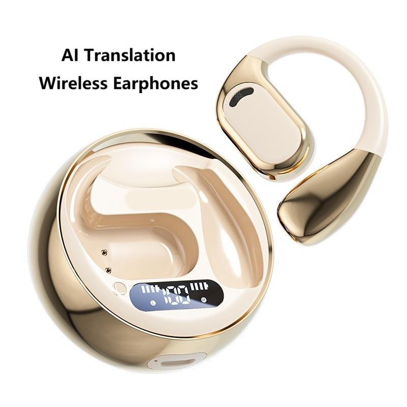 Écouteurs sportifs sans fil à conduction osseuse avec traduction IA, étanches, à fixation auriculaire, avec fonction de traduction IA