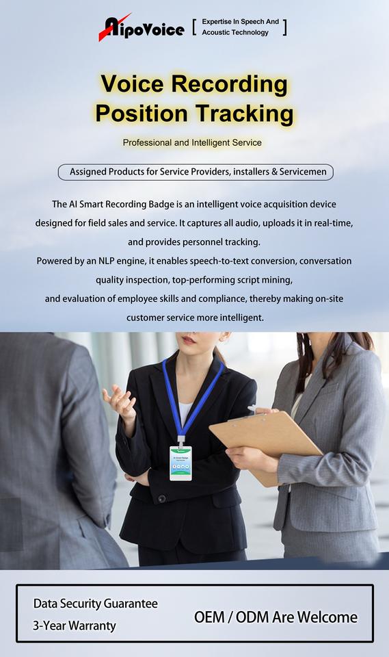 AipoVoice AIP25001 AI 4G Smart Badge Meeting Recorder with USB Charging MP3 Format Long-Time Recording Transcribe & Analyze