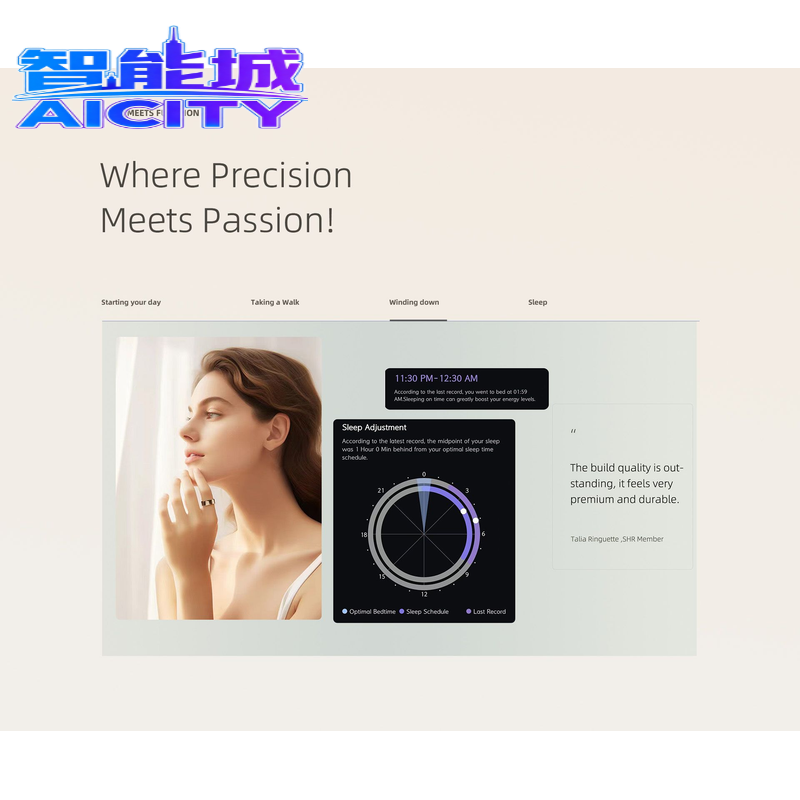 AICITY K3 Smart Ring : Analyse IA avancée, suivi des phases de sommeil, découverte du chronotype, exercices de méditation, contrôle via application mobile