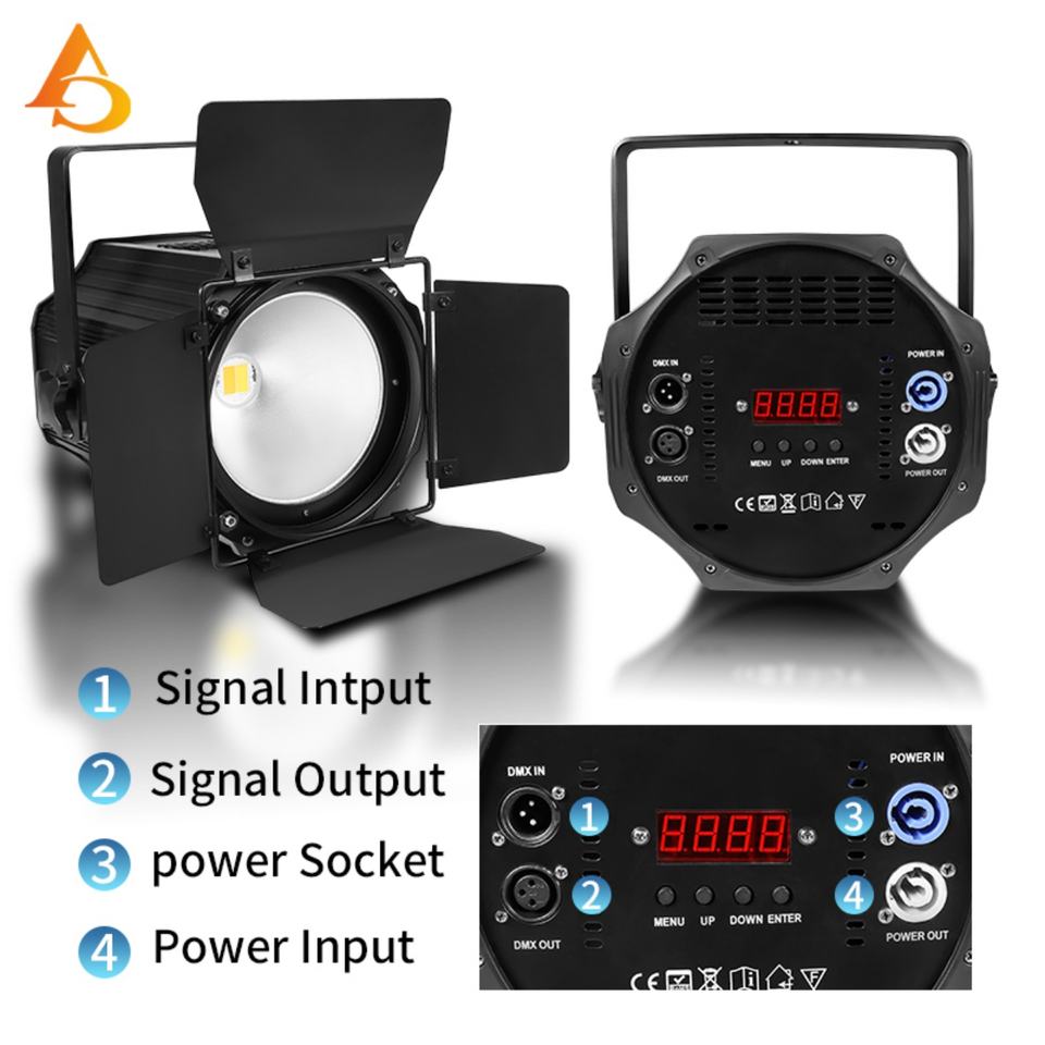 Projecteur Fresnel LED RGBW haute puissance 200W AICPOSE pour mariage, fête, éclairage de scène DMX