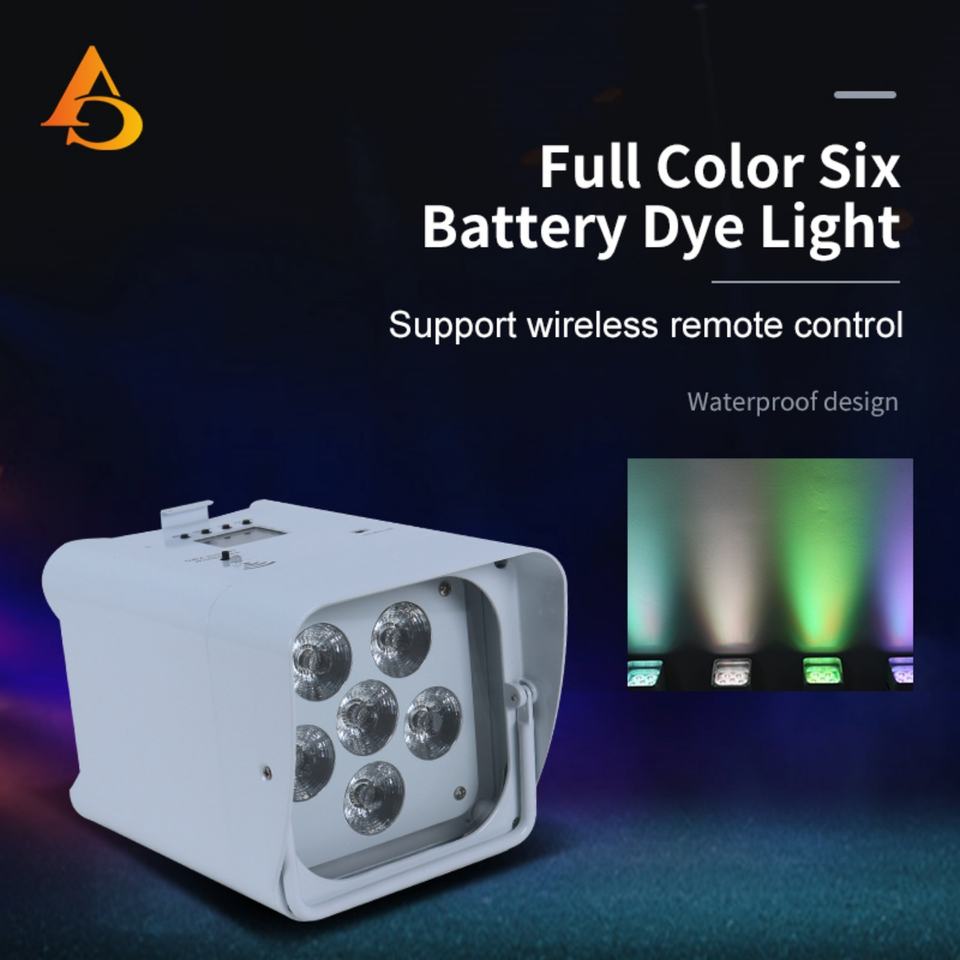 AICPOSE Projecteur LED PAR en aluminium à succès, RGBWA+UV 6-en-1, mélange de couleurs, 6x18W, sur batterie, DMX, pour scène