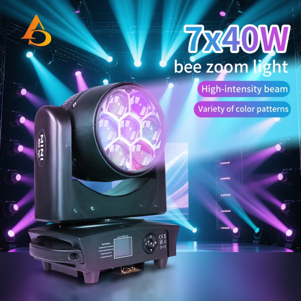 AICPOSE Mini Bee Eye 7x40 RGBW Moving Head Light DMX512 Zoom Moving Head Light pour discothèque et mariage