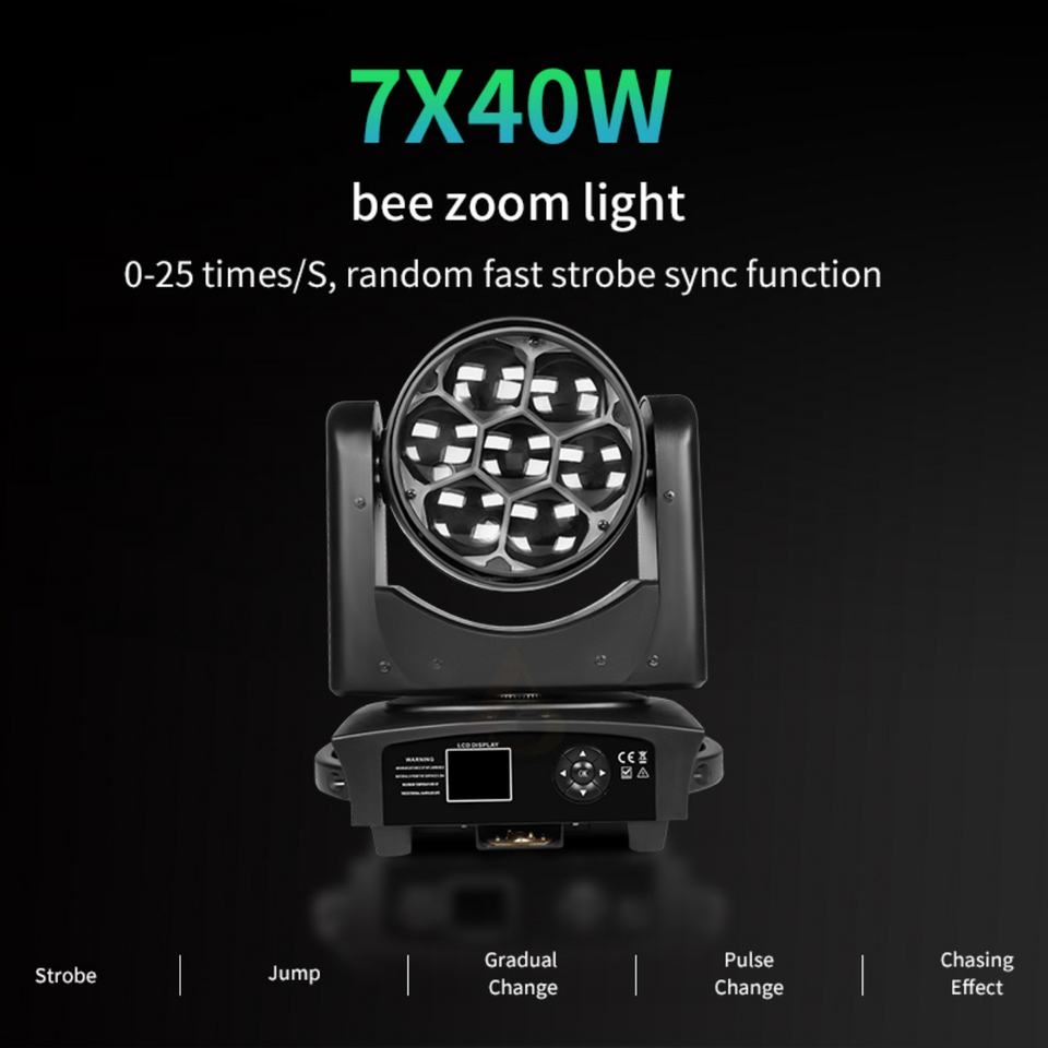 AICPOSE Projecteur professionnel à tête mobile LED 7x40W Bee Eye avec contrôle de pixels RGBW