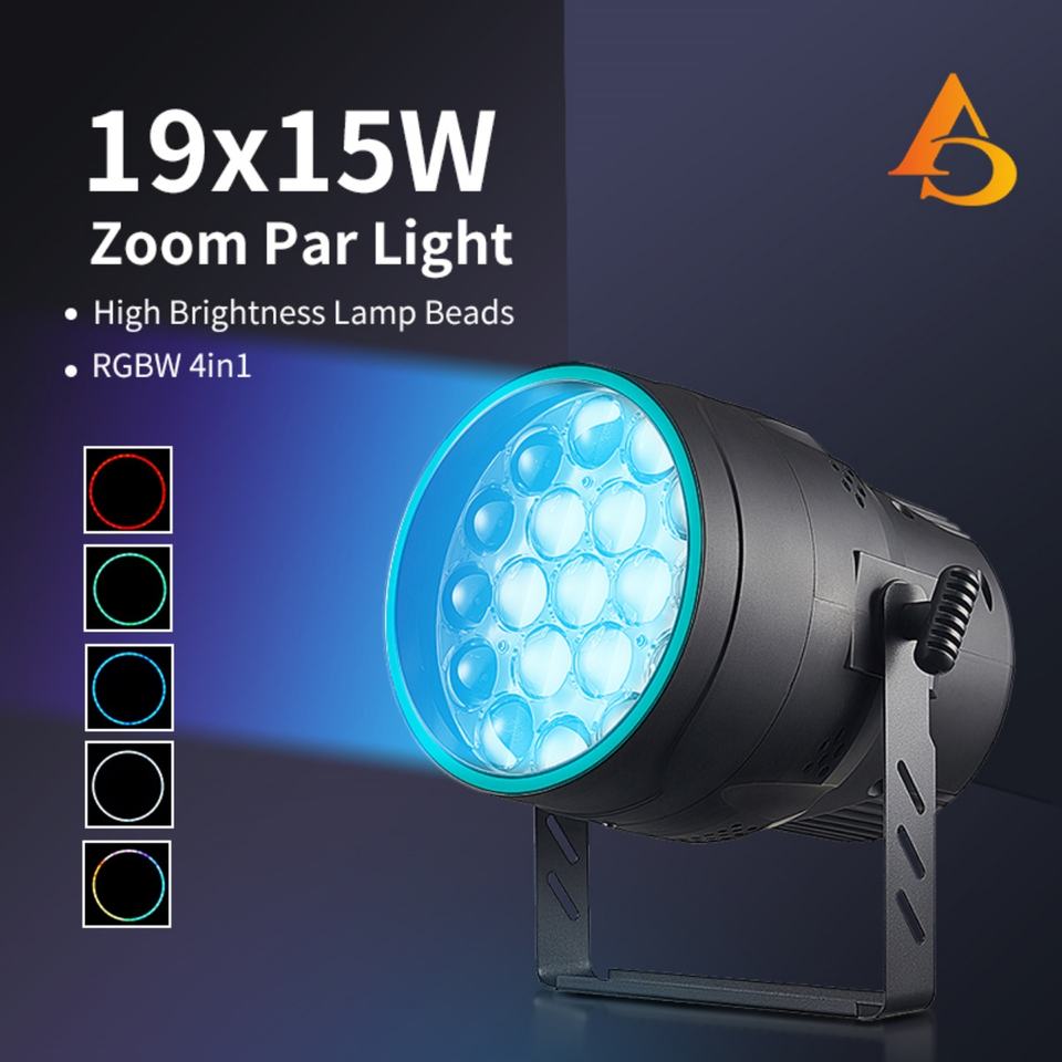 Projecteur PAR LED AICPOSE RGBW DMX512 19x15W avec zoom pour scène, fête, église, club, événement