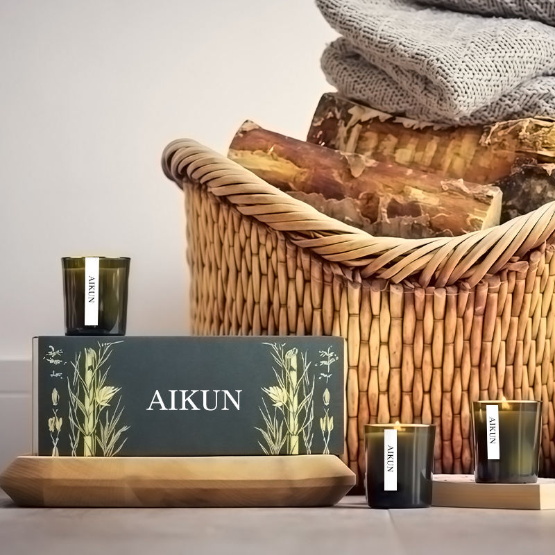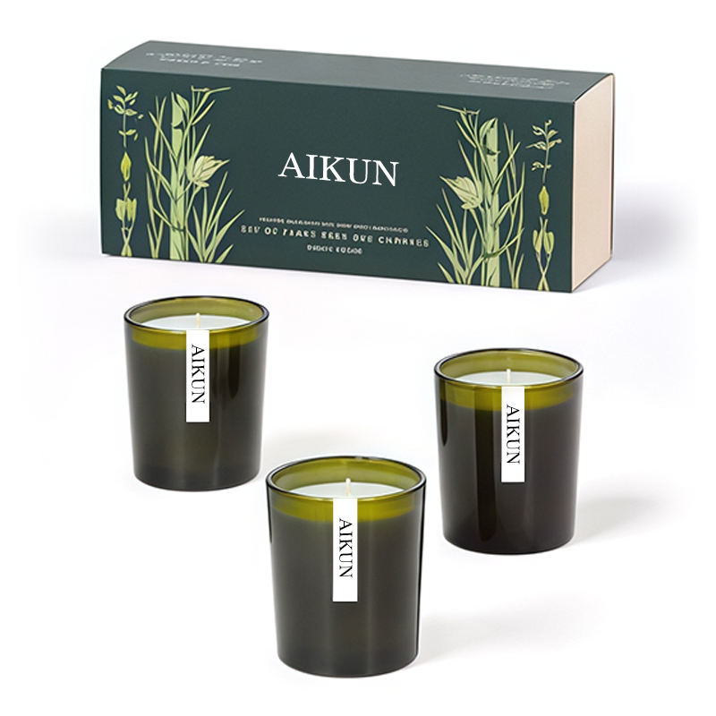 AIKUN Ensemble de bougies parfumées 3-en-1 Cannelle fruitée très parfumée pour le mariage Thanksgiving Diwali Pâques Ramadan-dans un pot en ciment