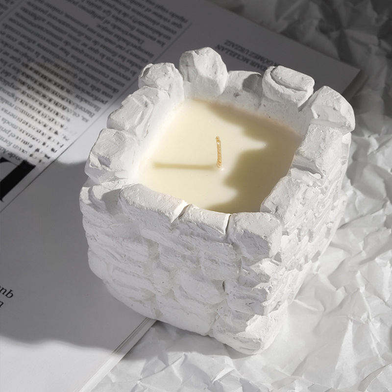 Bougie parfumée en plâtre AIKUN, pot en gypse texturé, cire de soja pour aromathérapie, décoration intérieure, cadeau, vente en gros et étiquette personnalisée