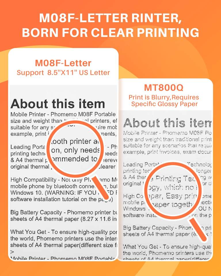 AIMO 8 pouces sans encre Mini A4 Imprimante portable Imprimante thermique mobile sans fil Mini A4 Imprimante d'autocollants