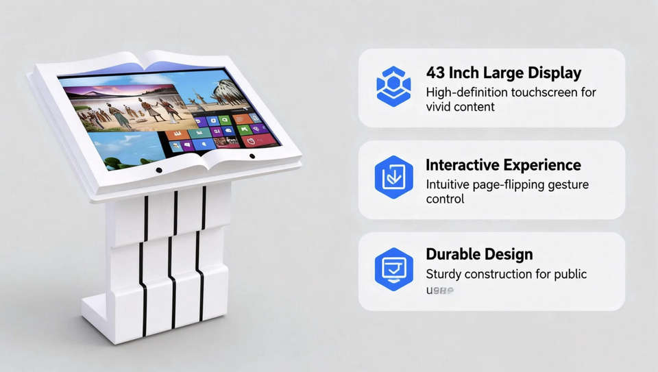 Kiosque numérique à écran tactile LED AIMV 43/50/55 pouces - Musée, bibliothèque, lecture de livres, service d'information en libre-service, étanche IP65