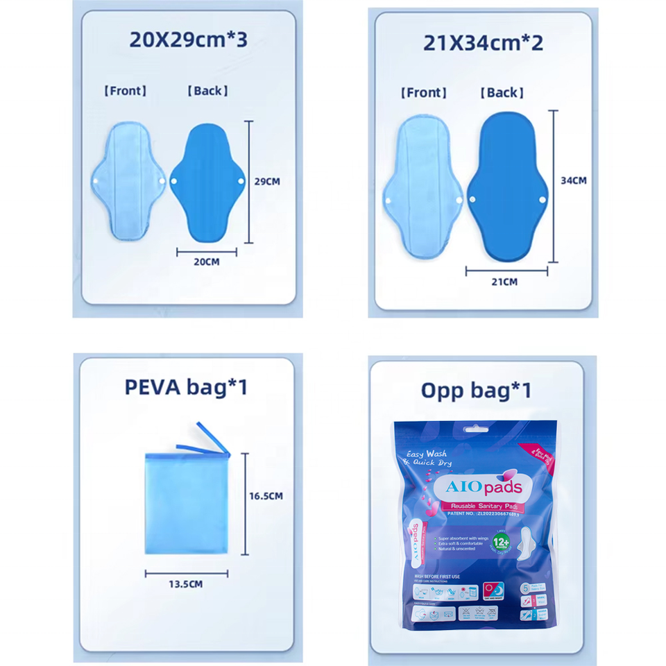 AIO 6 pièces Ensemble de serviettes hygiéniques menstruelles réutilisables respectueuses de la peau pour femmes Conçu exclusivement pour les pays africains des Nations Unies