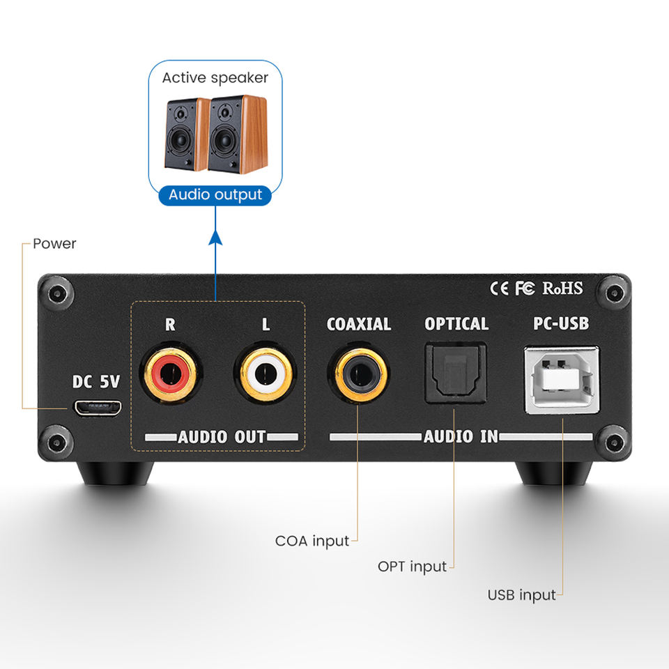 AIYIMA DAC-A2 2.0CH USB DAC Décodeur Audio Amplificateur de Son Convertisseur Audio Numérique-Analogique MINI HiF USB/Coaxial/Optique