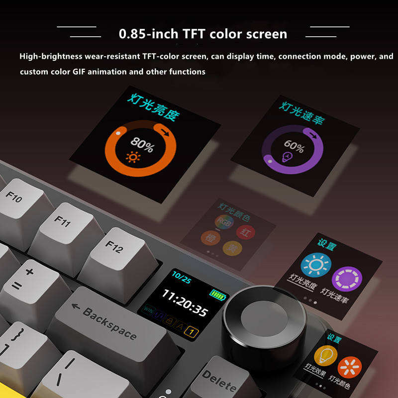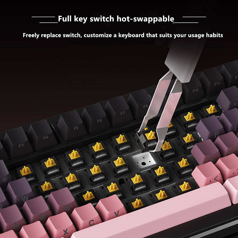 AJAZZ AK820 MAX PLUS (Flying Fish Switch) Clavier de jeu Tri-Mode rose dégradé imprimé sur le côté en usine (filaire/Bluetooth/2.4G)