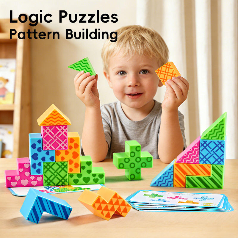 Jeux de réflexion AJB : Blocs de puzzle 3D à motifs, manipulations géométriques, jouets éducatifs Montessori STEM en plastique pour enfants de 3 à 13 ans
