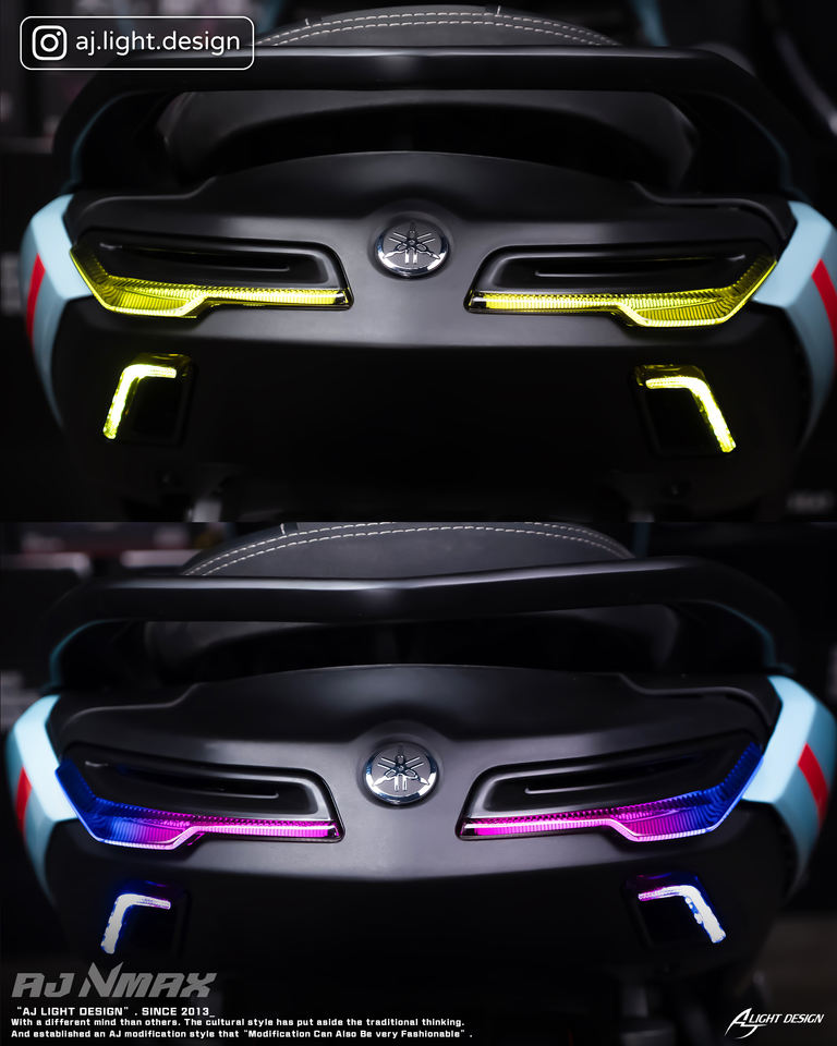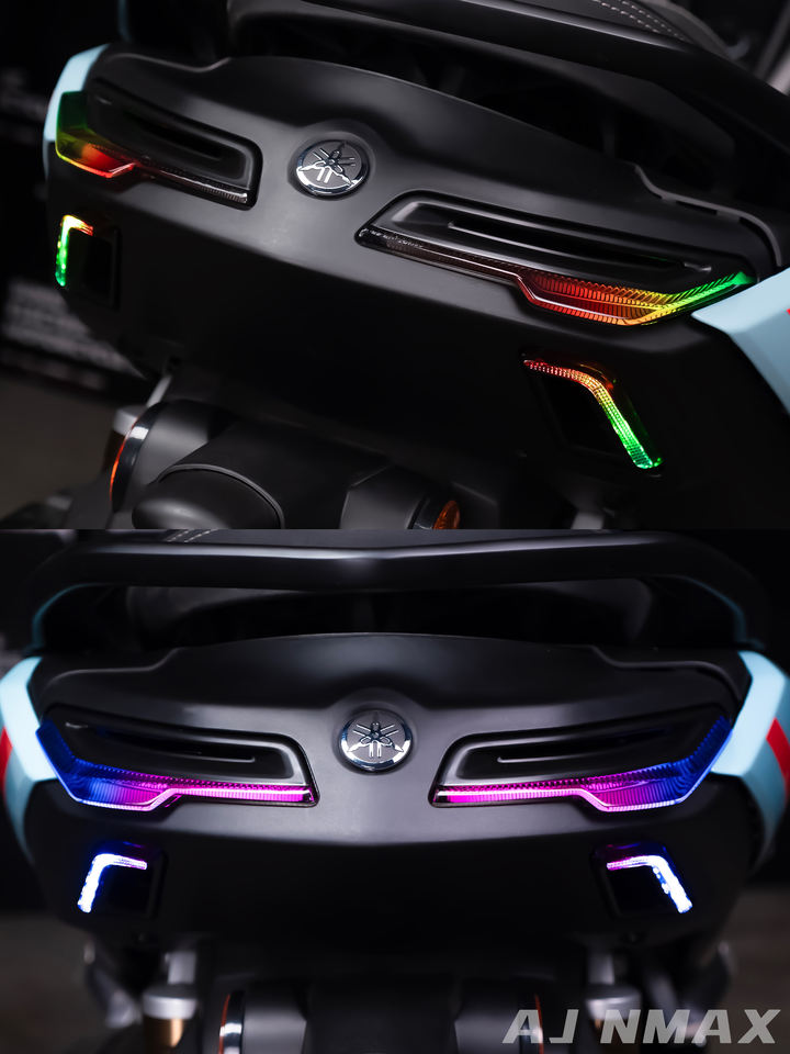 AJLIGHT DESIGN Feux arrière à LED RGB à quatre lentilles fabriqués à Taïwan, système d'éclairage arrière dédié pour moto AJNMAX-BTL pour NMAX V3