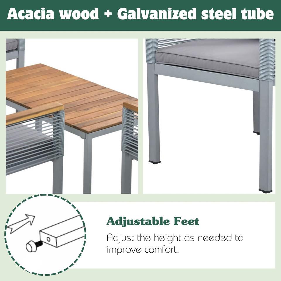 Ensemble de mobilier de jardin en acacia et tubes d'acier galvanisé