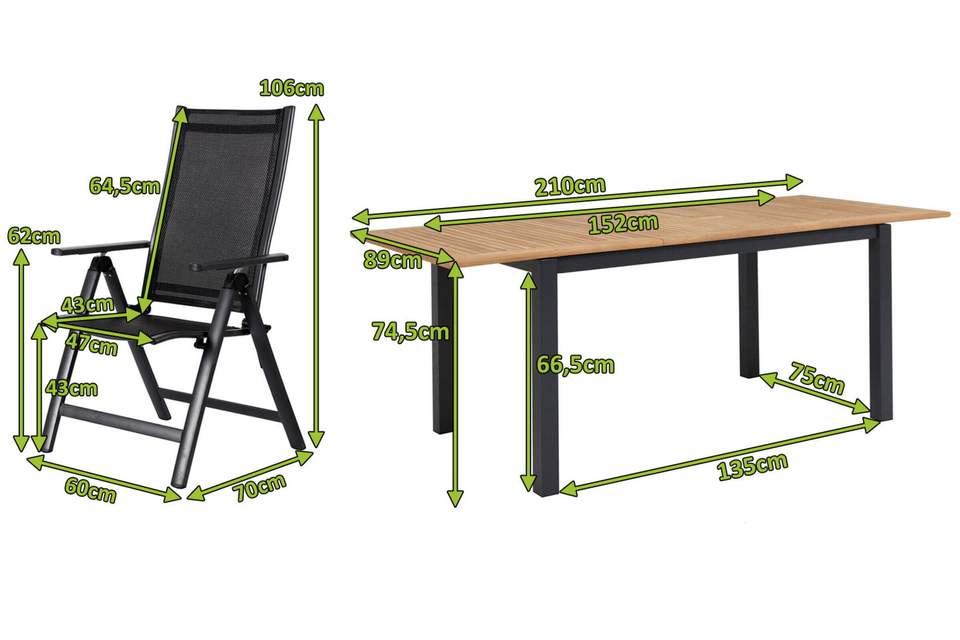 152/210 x 89 x 74,5 cm