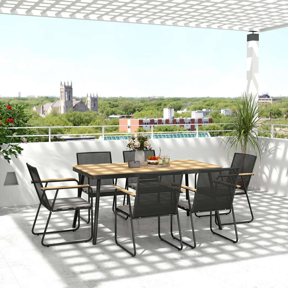 AJUNION ensemble de salle à manger d'extérieur en bois et métal fauteuils de restaurant de jardin table rectangulaire table à manger d'extérieur et chaises pour 6 sièges