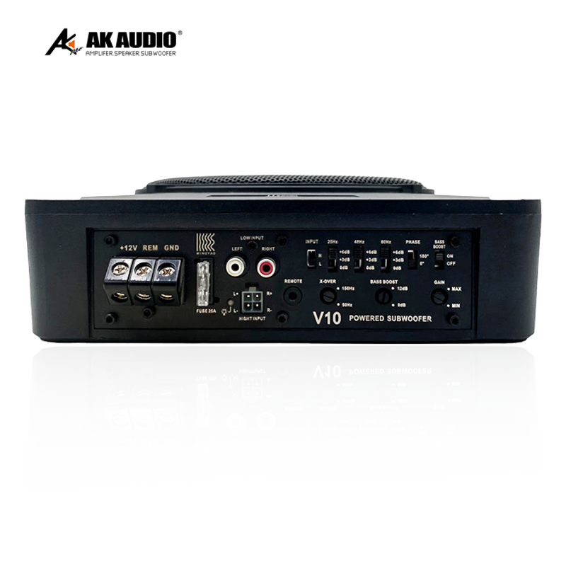 Subwoofer de voiture AK-26S, modèle compétition usine, le plus récent, 10 pouces, ultra-plat, en aluminium, actif, 12V DC, 150W RMS, pour installation sous le siège
