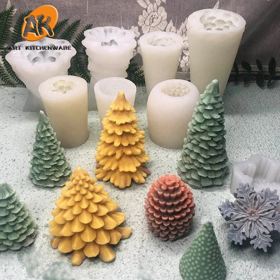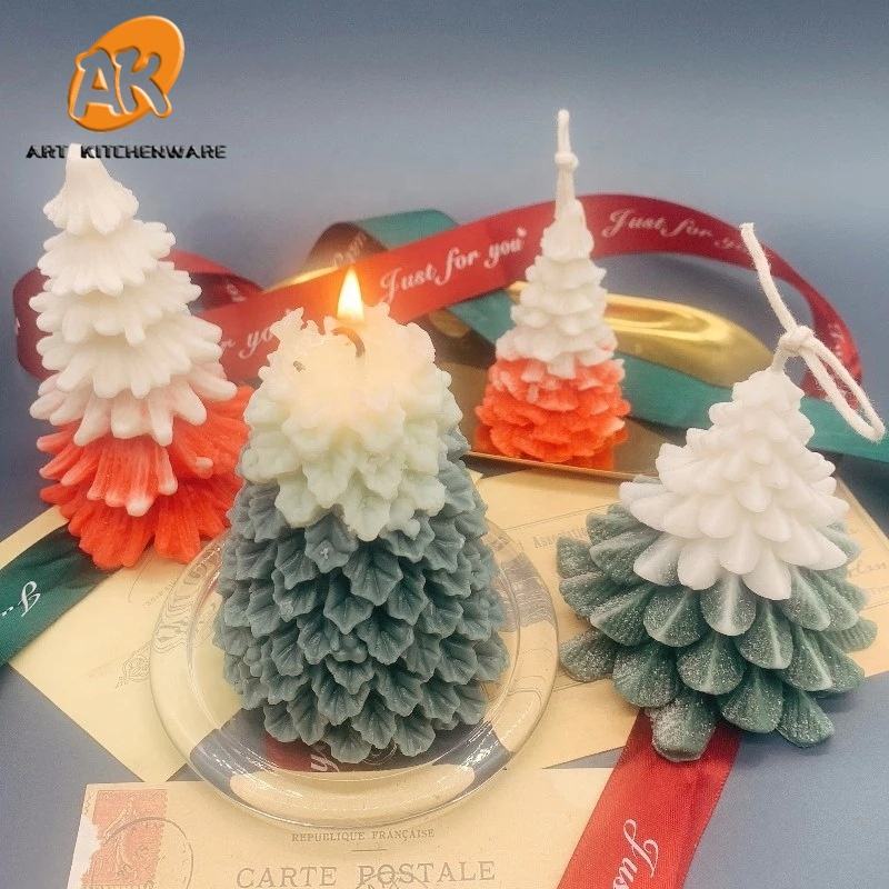 AK 3D arbre de noël bougie moule résine moule créatif en forme de coeur à la main bricolage aromathérapie bougie Silicone moule