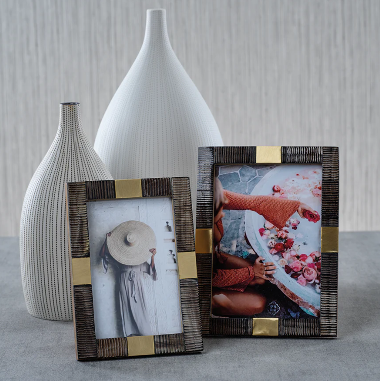 AK Brass Decorative Horn and Metal Photo Frame in Multi Color Finished Set of 2 at Best Price For Interior Decor / Gifting