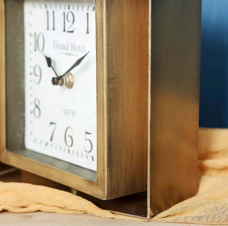 Horloge de table en métal sur support carré en laiton AK fini antique au meilleur prix pour la décoration intérieure de table