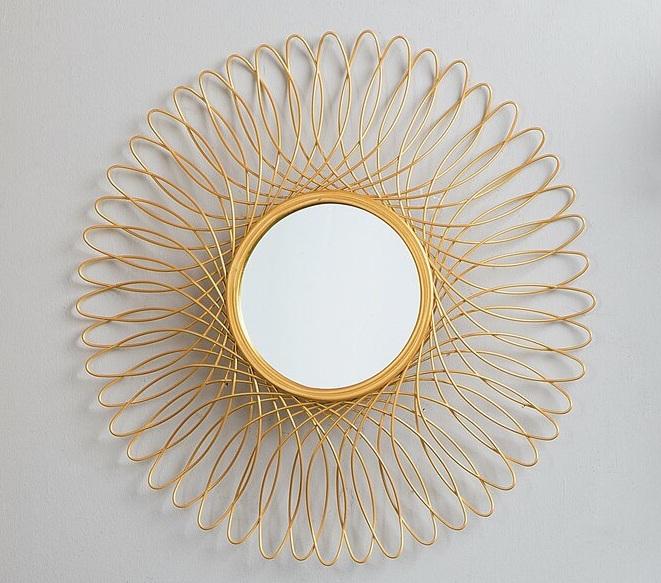 Miroir mural en métal au design feuille standard en laiton AK fini or miroir mural suspendu de qualité supérieure pour décor d'hôtel/décor de salon