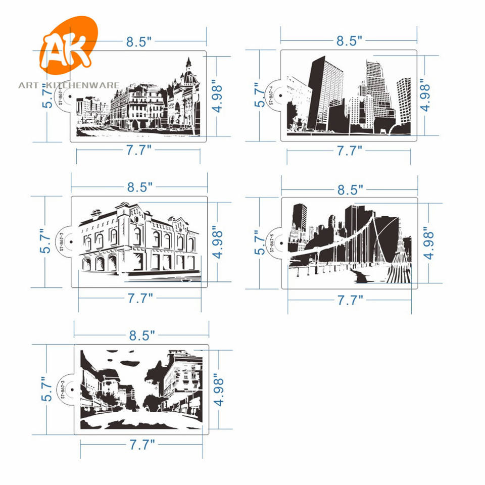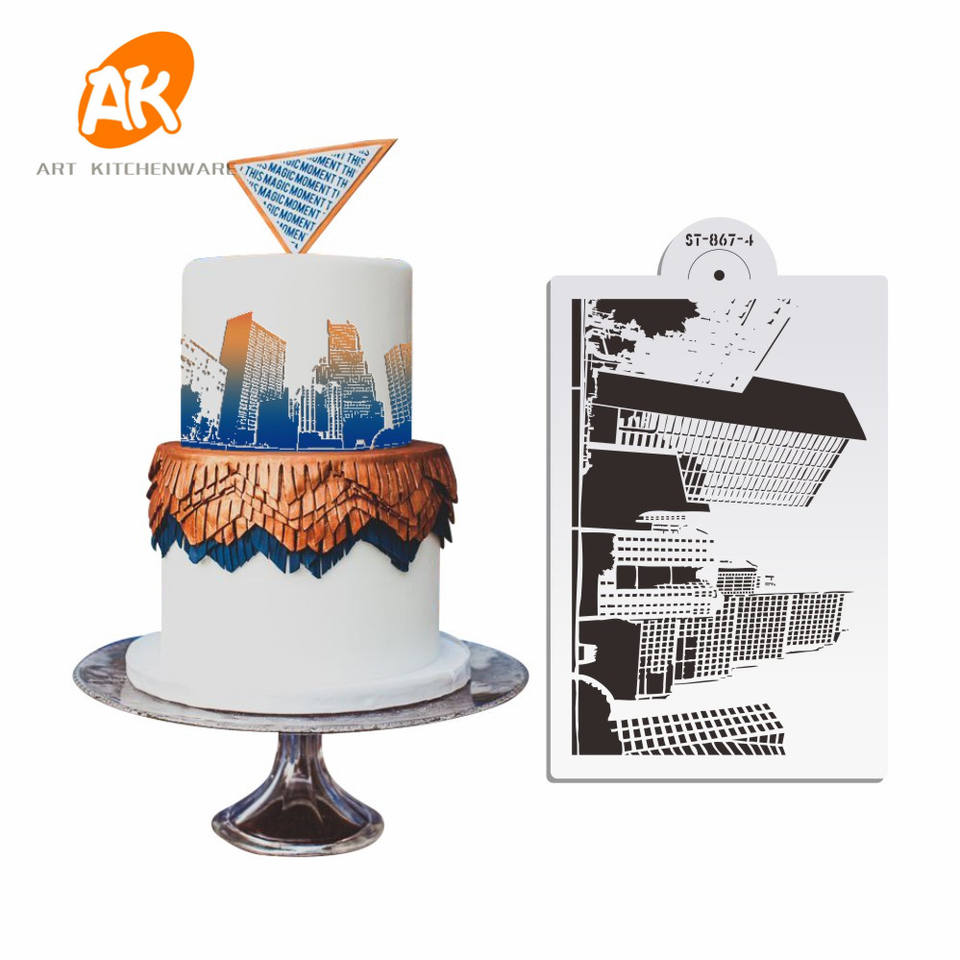 Pochoirs pour gâteaux en fondant AK Building Design, pochoirs pour glaçage royal, pochoirs pour aérographe, outils de pâtisserie, gabarits de dessin en plastique ST-867