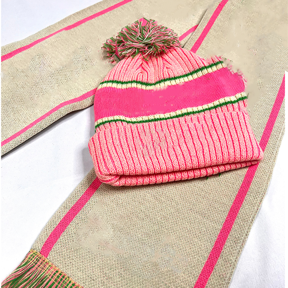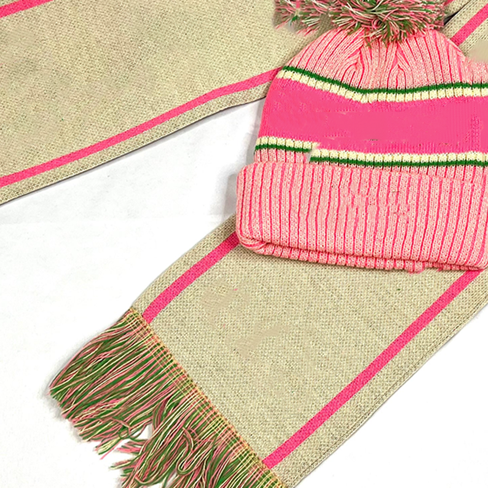 Ensemble bonnet et écharpe longue en tricot épais rose crème personnalisé AKA, avec franges luxueuses, accessoire d'hiver unisexe, idéal pour la fierté des sororités