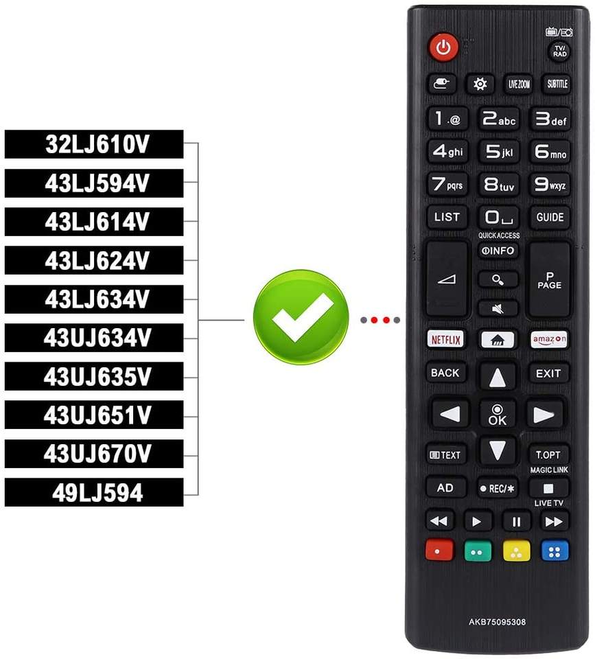 AKB75095308 Télécommande pour TV LED LG avec boutons Amazon et Netflix