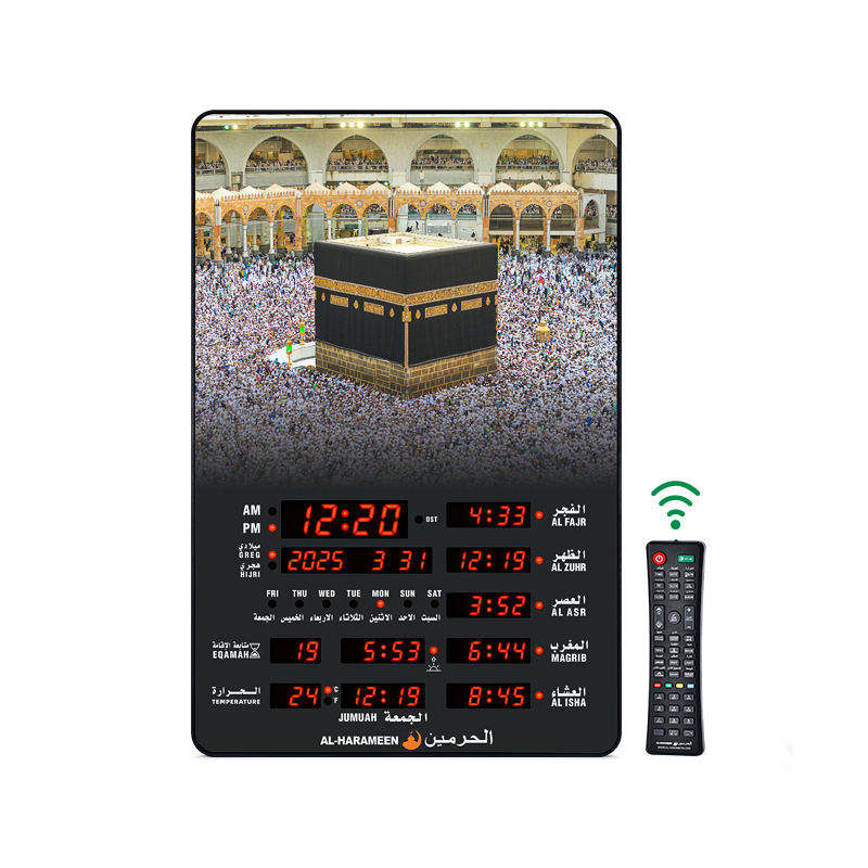 AL-HARAMEEN Horloge Murale LED Digitale d'Heure de Prière avec Fonction Azan BT et Caractéristiques Analogiques, Inspirée par l'Architecture Mosquée