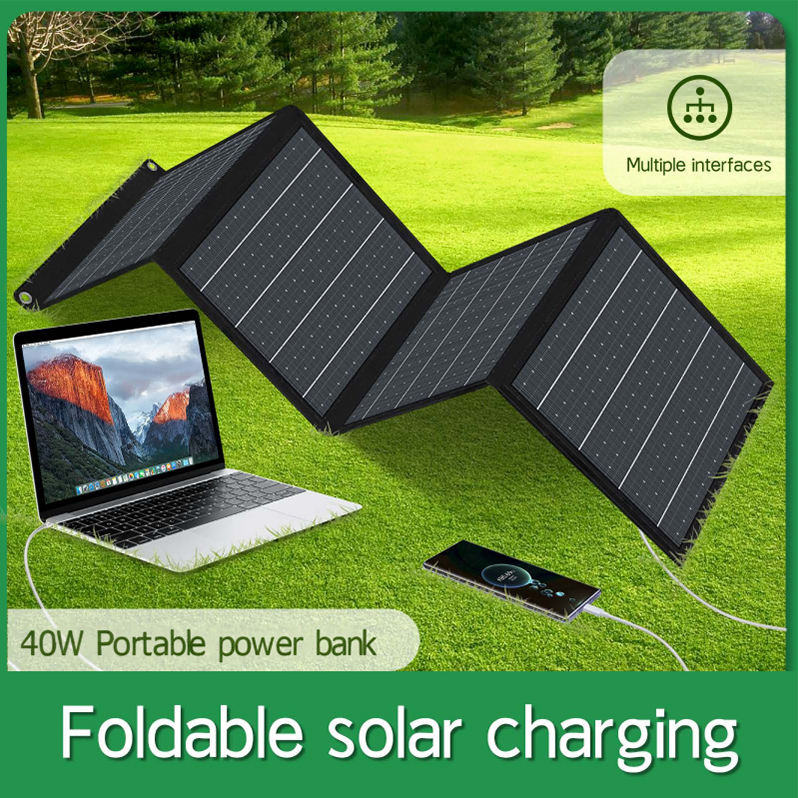 ALECTER Panneau solaire pliable 40W, efficacité 22%, étanche, silicium monocristallin, chargeur solaire portable, sortie USB+DC, extérieur