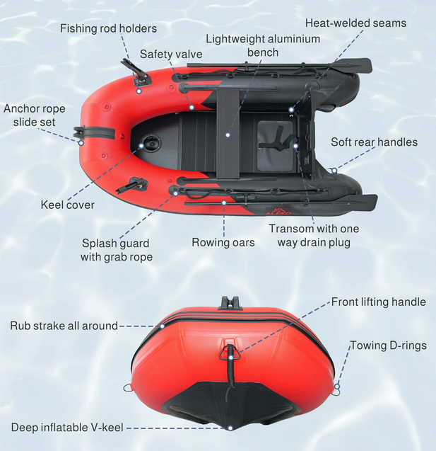 ALEKO Bateau de pêche gonflable avec plancher en aluminium 8 5 pieds Rouge et noir Nouveau stock